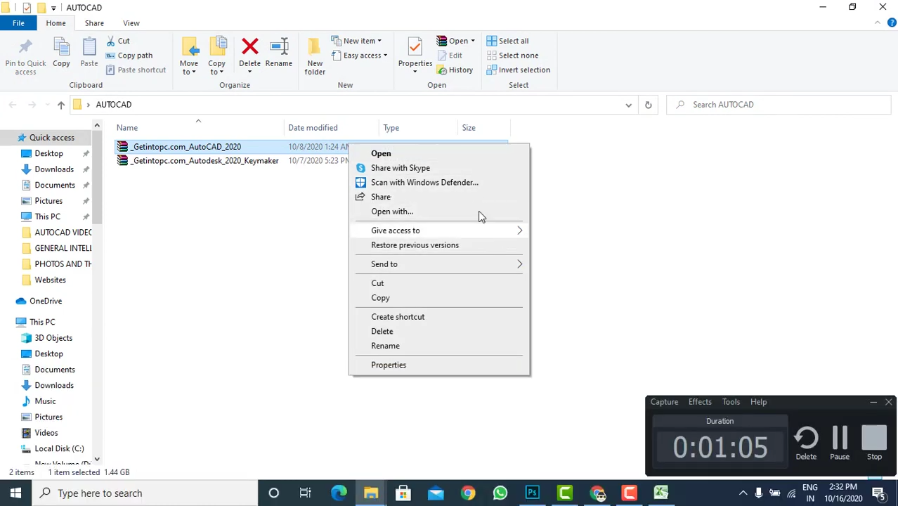 1)Right click on autodesk 2020 Keymaker