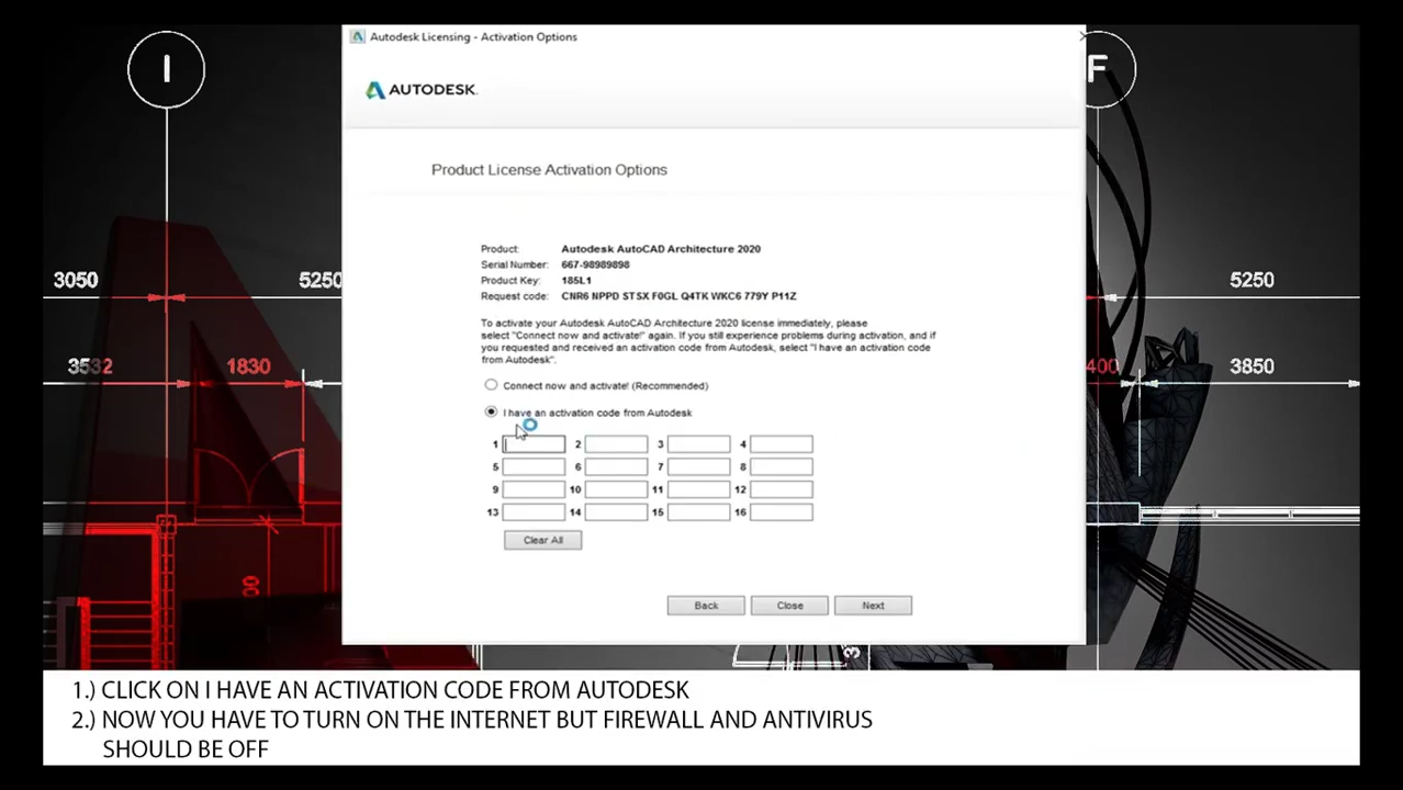 1)Click on I have an activation code from autodesk
