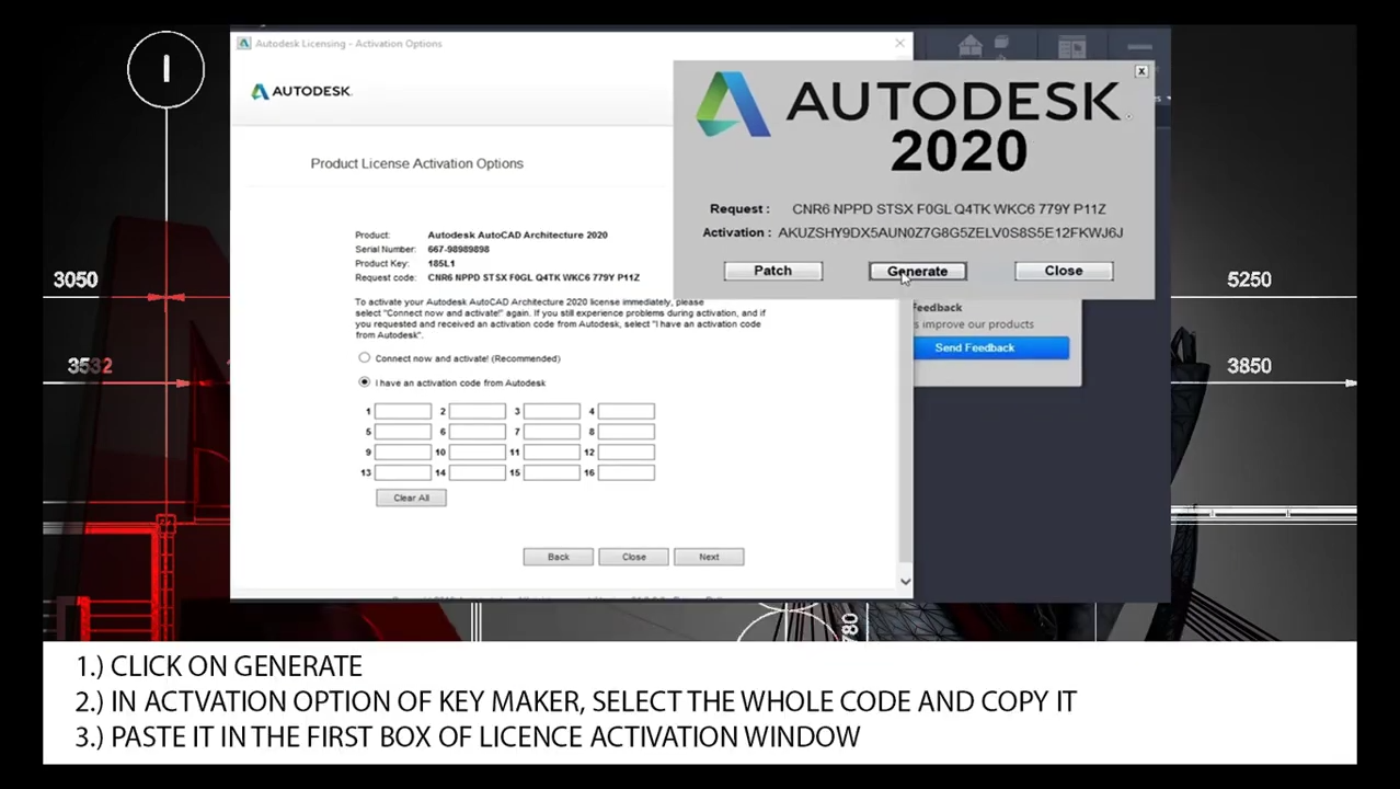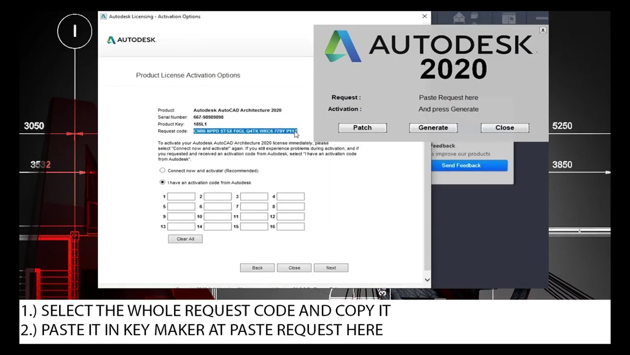 2)in activation option of key maker, select the whole code and copy it